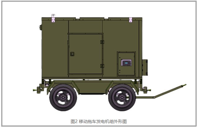 托車發電機組(發電廠)外觀如下圖2所顯示。一般托車發電機組要在靜音型發電機組的前提下配置了拖卡,完成了發電機隊的智能便捷挪動,適用大城市范圍之內短路線應急供電。